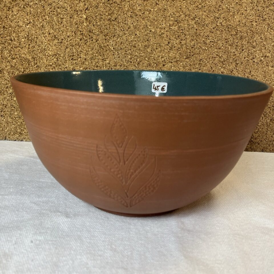 Saladier Saladier 50€ Bleu nuitTaille : Ø21cmX10cmØ23cmX10cm +€5 Saladier 45€ Ø21cmX9,5cm Vert anglais Saladier 40€ Ø20cmX9cmCouleur : TaupeBleu nuitEmeraudeVert anglais Saladier 35€ Ø17cmX9cmCouleur : Bleu nuitEmeraude
